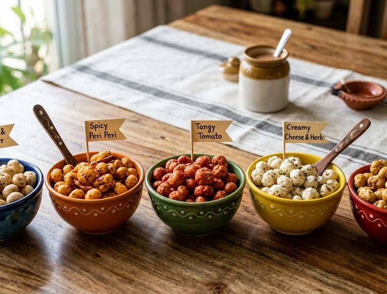 Gourmet salted & paper,peri peri, tangy tomato, caramel and creamy cheese flavors.