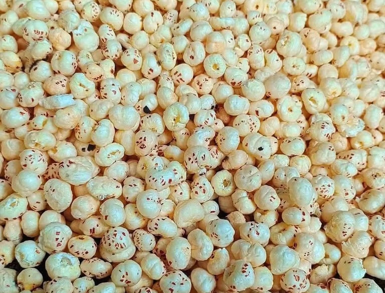 Raw 5 suta and 6 suta handpicked makhana sorted for size and quality.