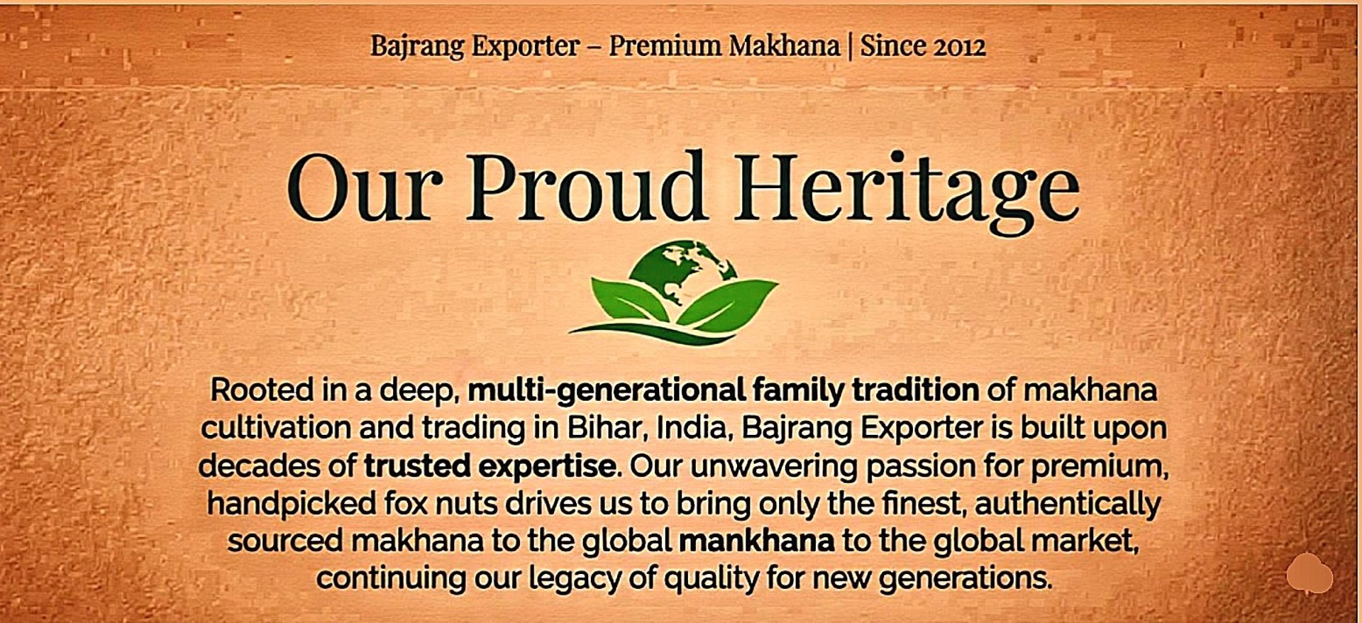 At Bajrang Exporter, our journey is deeply rooted in a rich family heritage of the Makhana (Fox Nut) trade. With years of experience passed down through generations in our local general store and trading business, we officially established our export footprint in 2012. Based in the heart of Sultanpur, Uttar Pradesh, India, we have transformed our traditional expertise into a modern, global enterprise dedicated to delivering the finest superfoods to the world