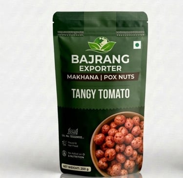 Innovation in Taste: While we respect tradition, we embrace innovation. Our range of flavored Makhanas is designed to cater to the evolving palate of global consumers.l.
