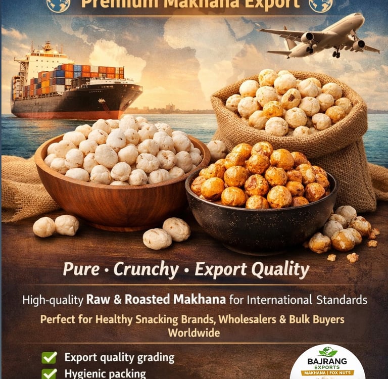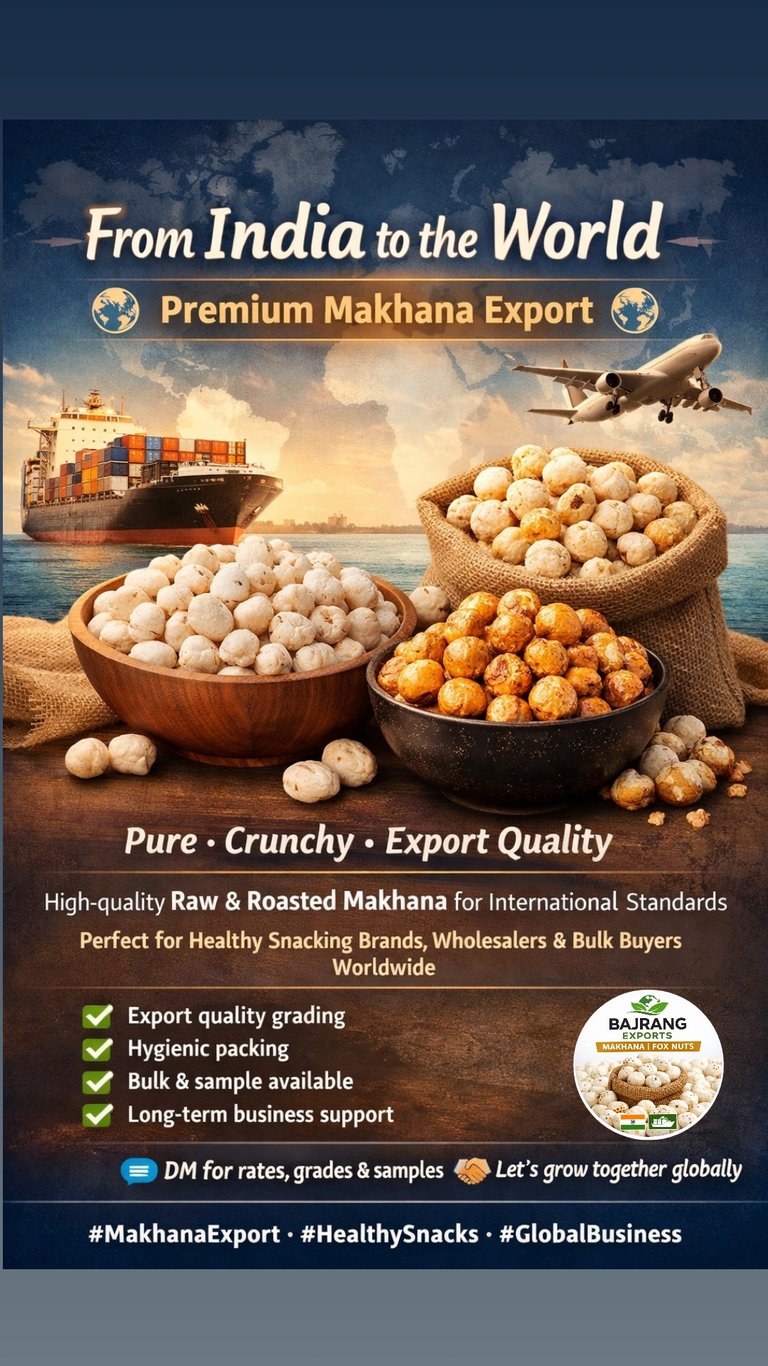 At Bajrang Exporter, we aren't just selling Makhana (Fox Nuts), we are delivering a promise of purity. As a dedicated merchant exporter, I personally oversee the sourcing of every grain—specializing in 5 Suta and 6 Suta premium grades. Whether you are in the USA, UAE, or anywhere across the globe, our goal is to provide you with export-worthy packaging and the crunchiest, hand-picked Makhana directly from India’s finest harvests.